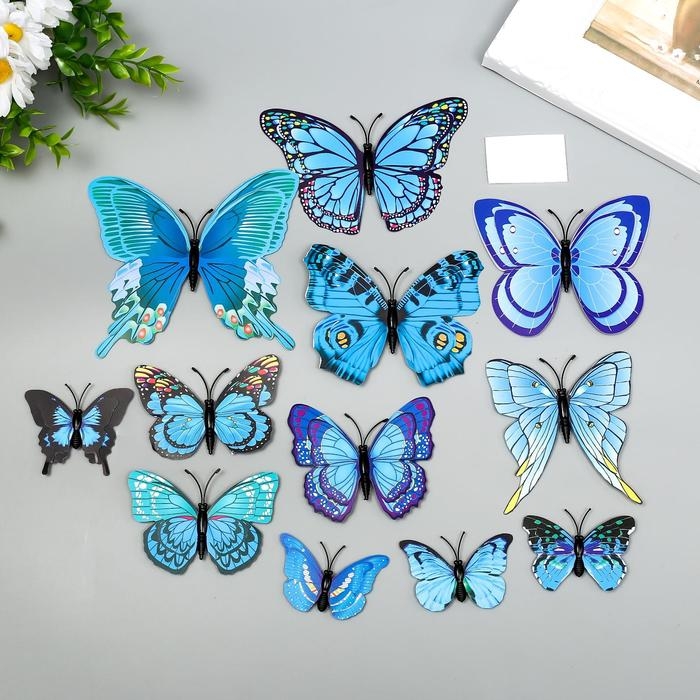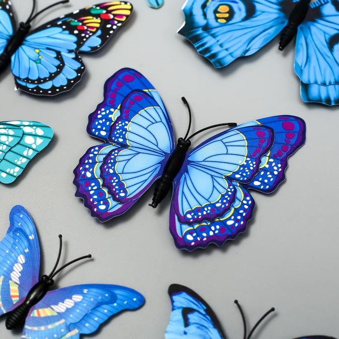 Магнит пластик "Бабочки голубые" набор 12 шт