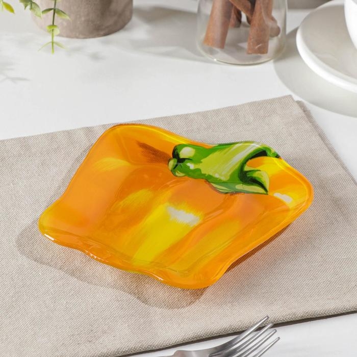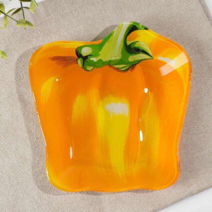 Блюдо стеклянное сервировочное Доляна «Перчик», 16×15 см, цвет жёлтый