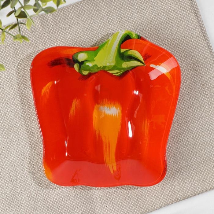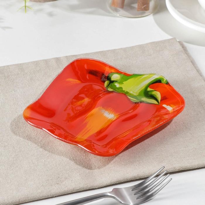Блюдо стеклянное сервировочное Доляна «Перчик», цвет красный, 16×15 см