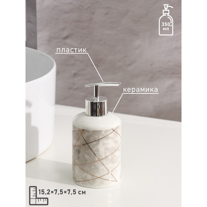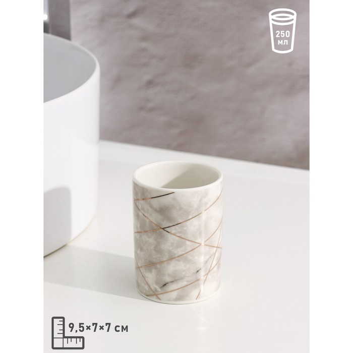 Набор аксессуаров для ванной комнаты «Мрамор», 4 предмета (дозатор 190 мл, мыльница, 2 стакана 290 мл), цвет белый