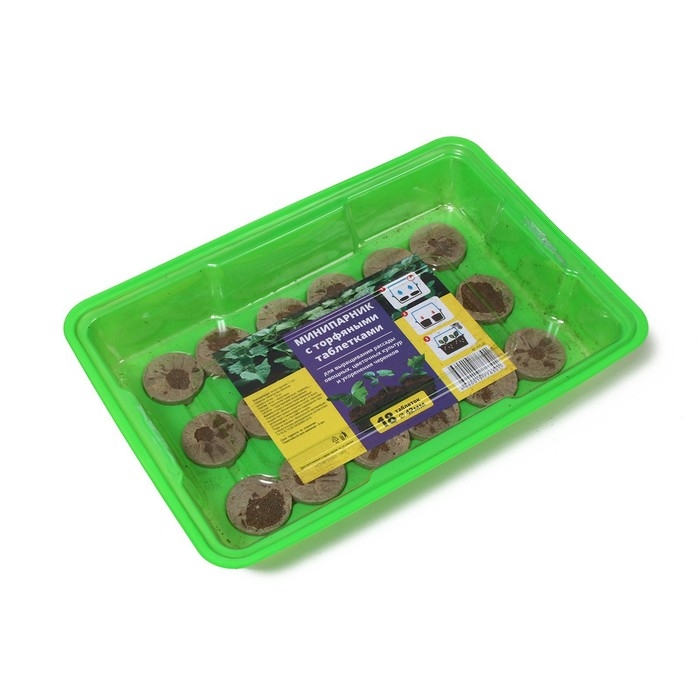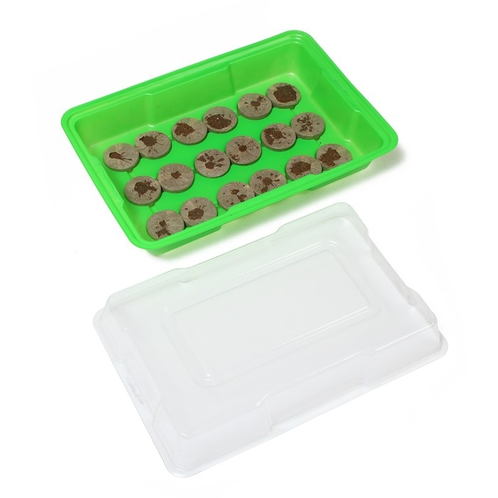 Мини-парник для рассады: торфяная таблетка d = 4,2 см (18 шт.), парник 36 × 25 см, зелёный