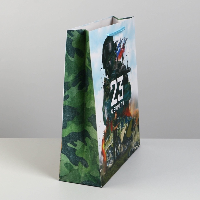 Пакет подарочный ламинированный вертикальный, упаковка, «С 23 февраля», M 26 х 30 х 9 см