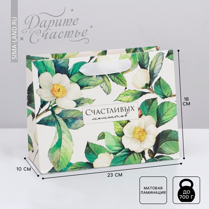 Пакет подарочный ламинированный горизонтальный, упаковка, «Счастливых моментов», MS 23 х 18 х 10 см