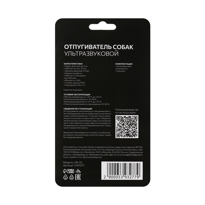 Отпугиватель собак Luazon LRI-02, ультразвуковой