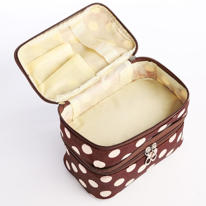 Косметичка, 2 отдела на молниях, цвет коричневый/бежевый