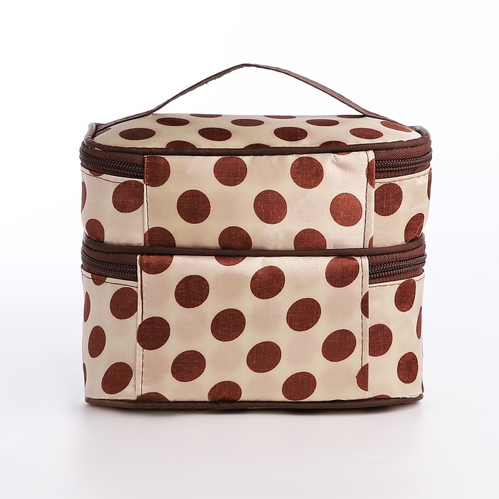 Косметичка, 2 отдела на молниях, цвет бежевый/коричневый