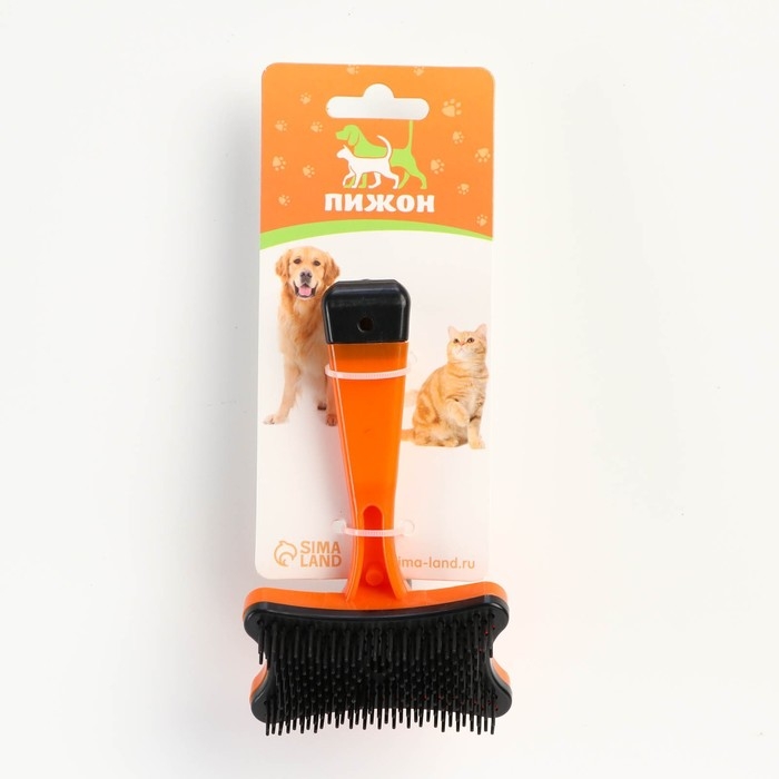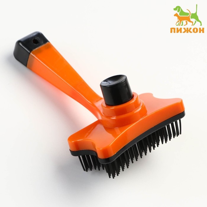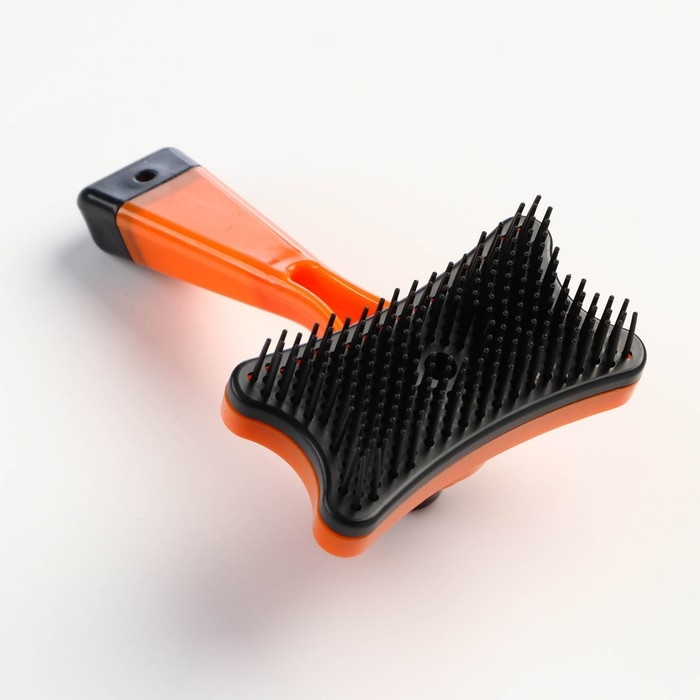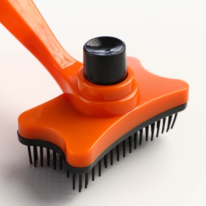 Пуходерка пластиковая "Косточка" с самоочисткой, 8,5 х 12,5 см, оранжевая