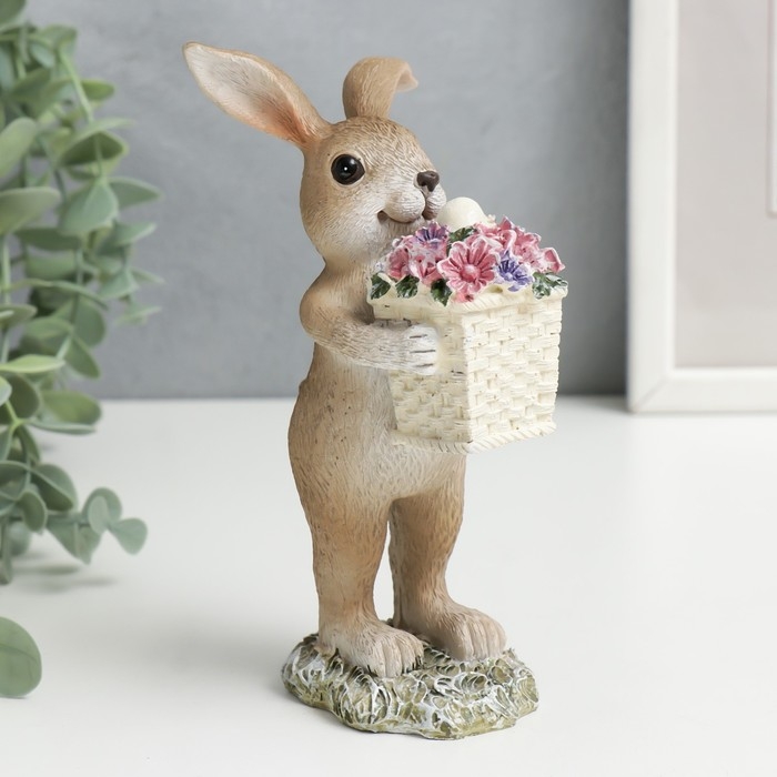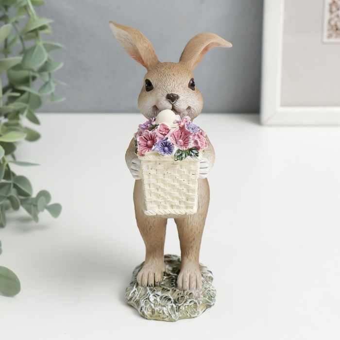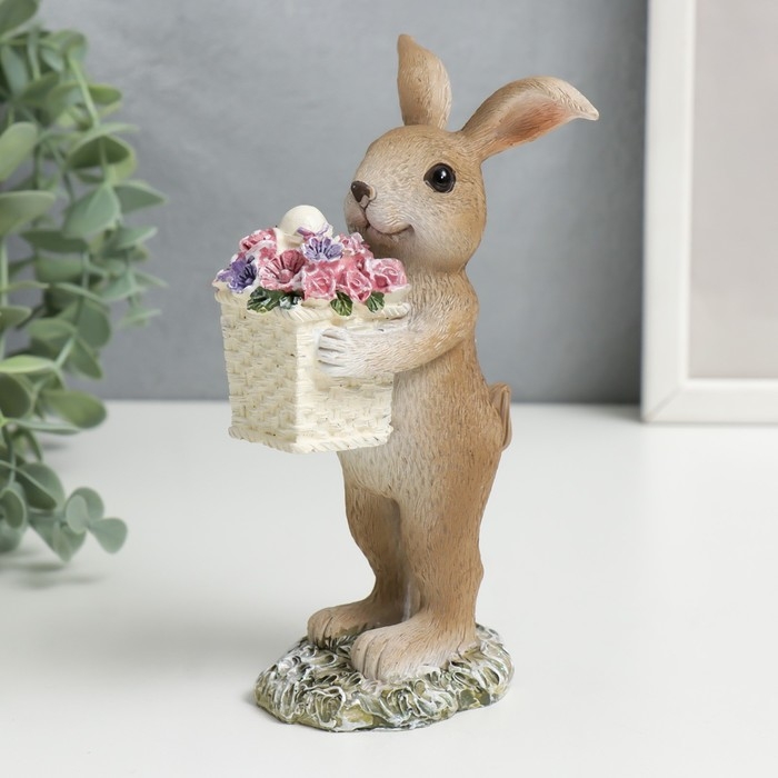 Сувенир полистоун "Зайчик с корзиной цветов" 15х7х8 см