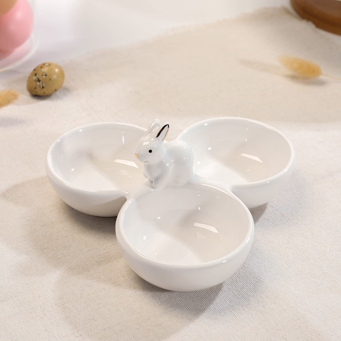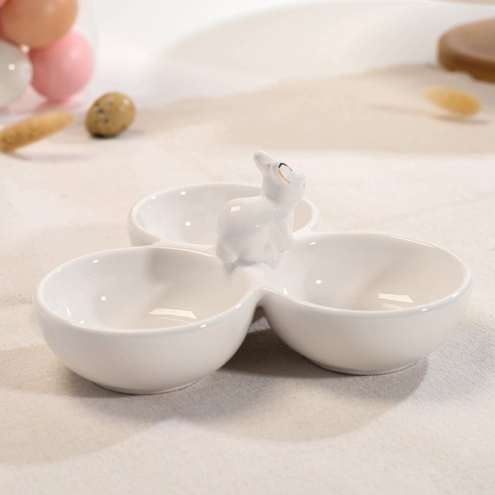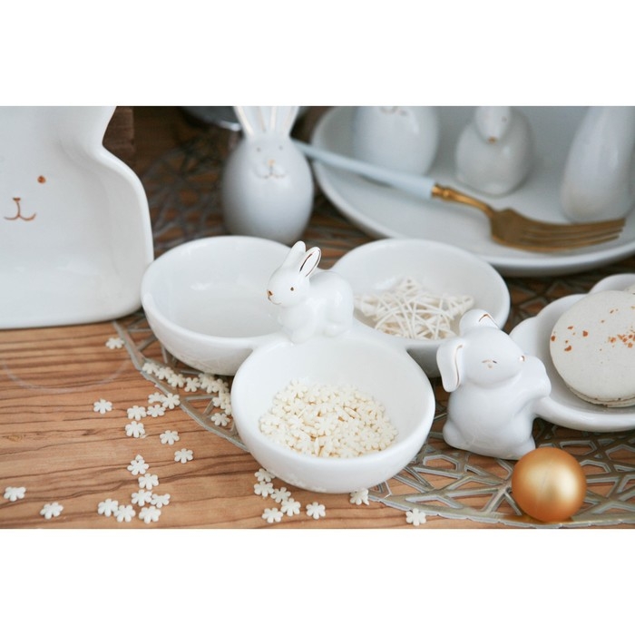 Менажница 3 ячейки Доляна «Зайка в золотом», 16,5×9 см, цвет белый