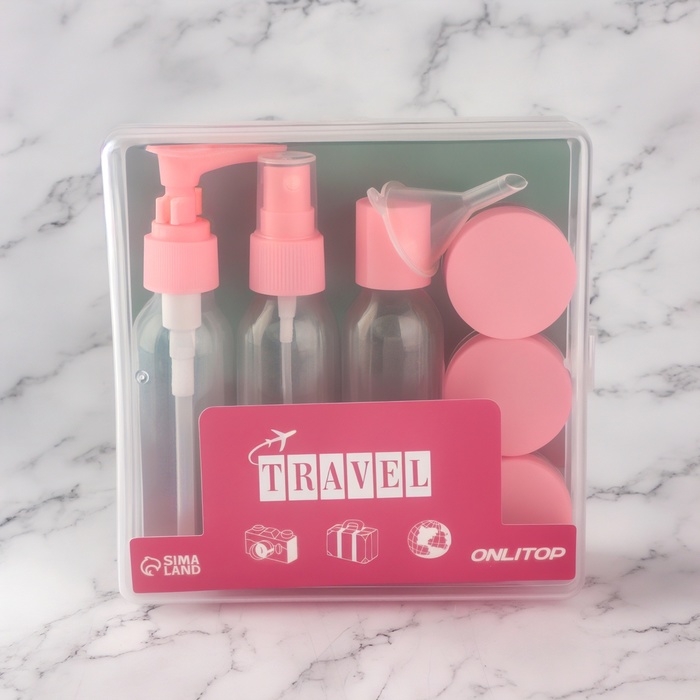 Набор для хранения, в футляре, 9 предметов, цвет прозрачный/розовый