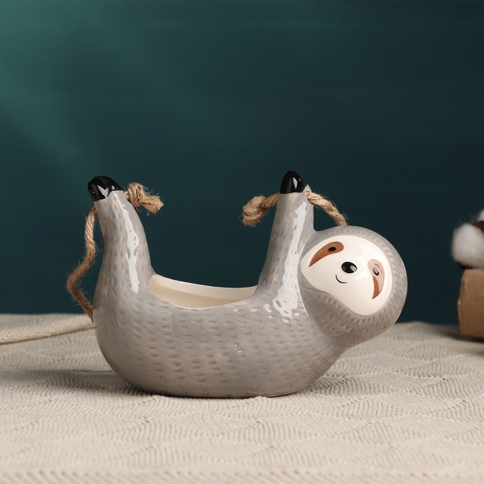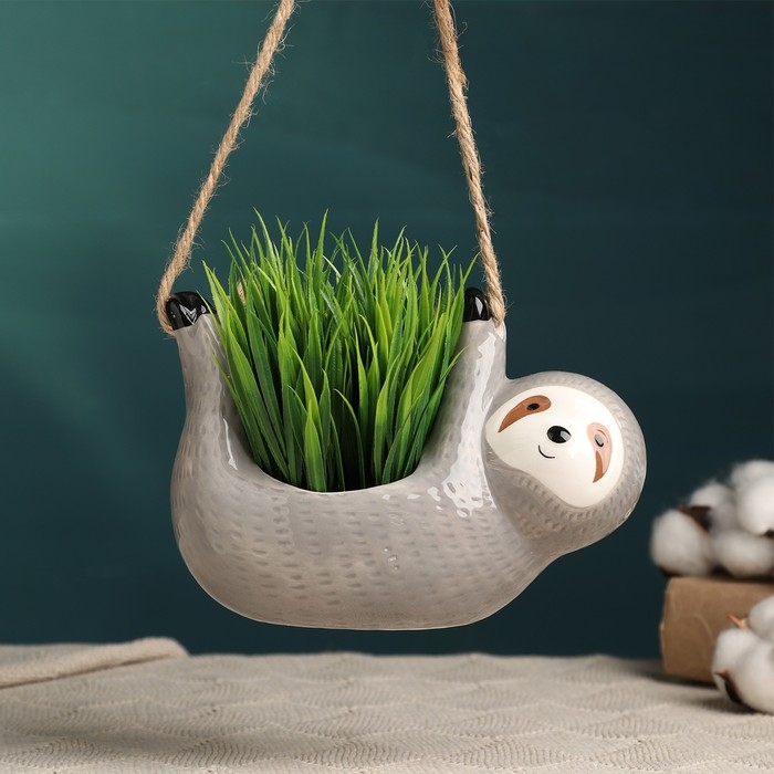 Кашпо подвесное "Ленивец" серый, 15х11см