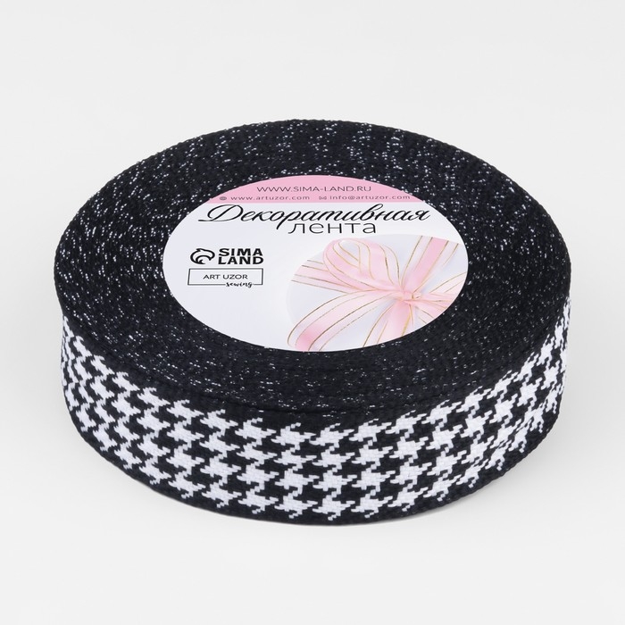 Лента декоративная «Гусиная лапка», 25 мм, 9 ± 0,5 м, цвет чёрный/белый №002