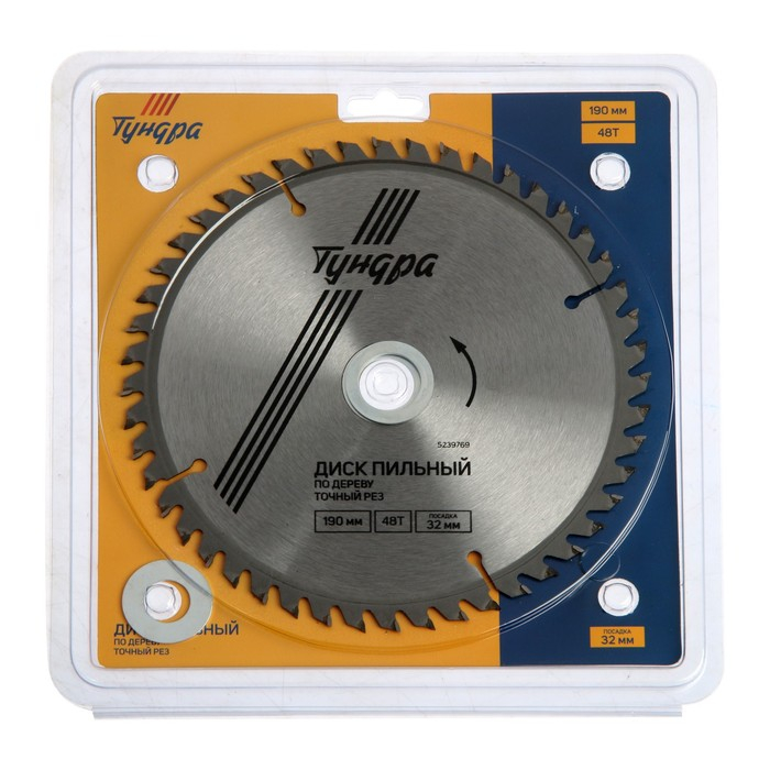 Диск пильный по дереву ТУНДРА, точный рез, 190 х 32 мм (кольца на 22,20,16), 48 зубьев