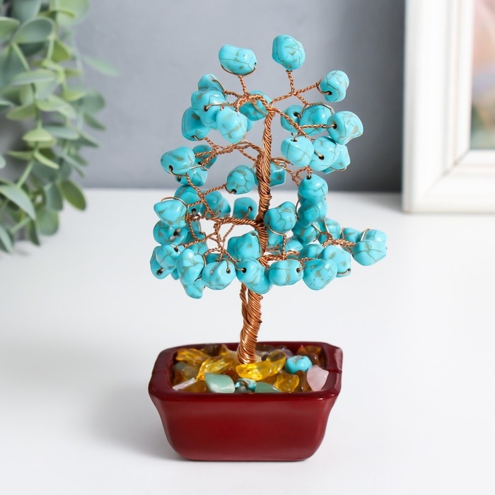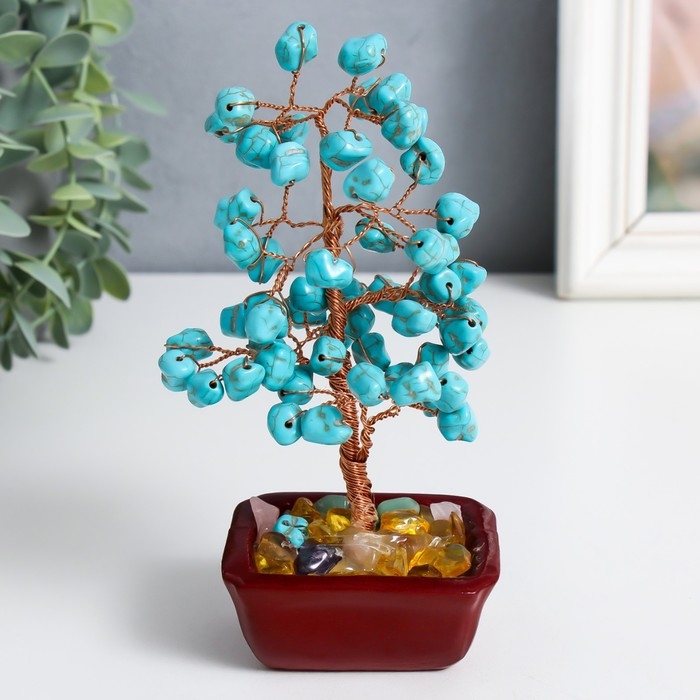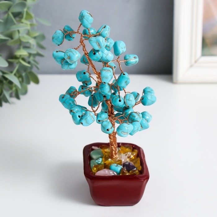 Сувенир бонсай "Денежное дерево с бирюзой" 60 камней 16х7,5х5,5 см
