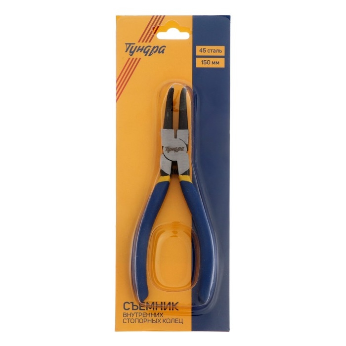 Съемник внутренних стопорных колец ТУНДРА, изогнутые губки на сжим, 150 мм