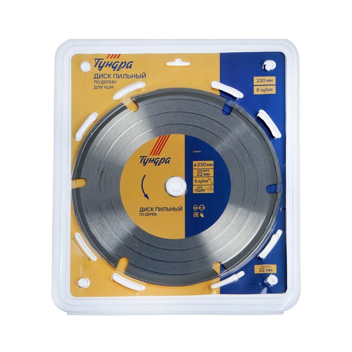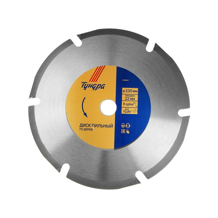 Диск пильный для УШМ ТУНДРА, для быстрой и плавной обработки дерева, 230 х 22 мм, 6 зубов