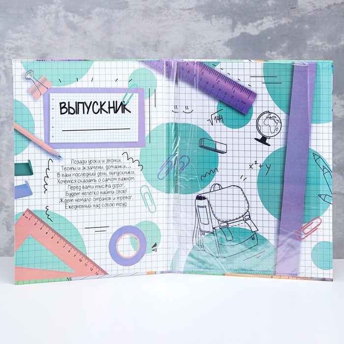 Папка с двумя файлами А4 "Выпускник" фон в клетку, белый и зеленый