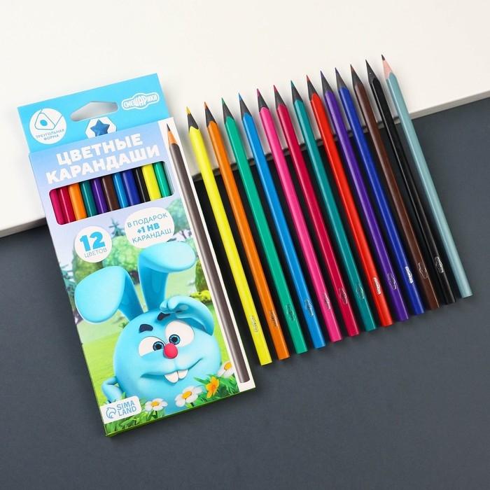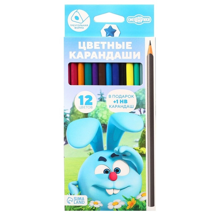 Цветные карандаши, 12 цветов, трехгранные, Смешарики