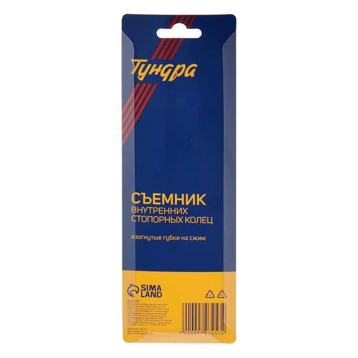 Съемник внутренних стопорных колец ТУНДРА, изогнутые губки на сжим, 170 мм
