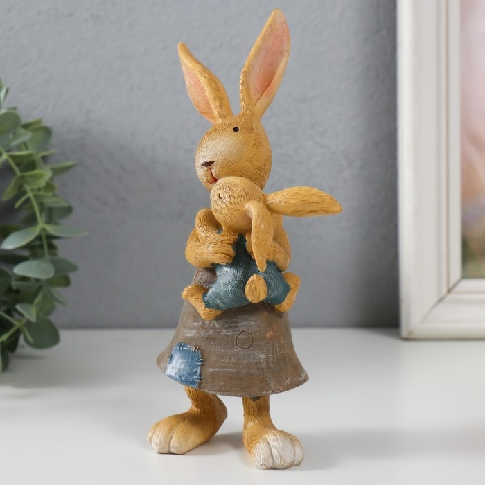 Сувенир полистоун "Мама Зайка с зайчонком" 10х6х18,5 см