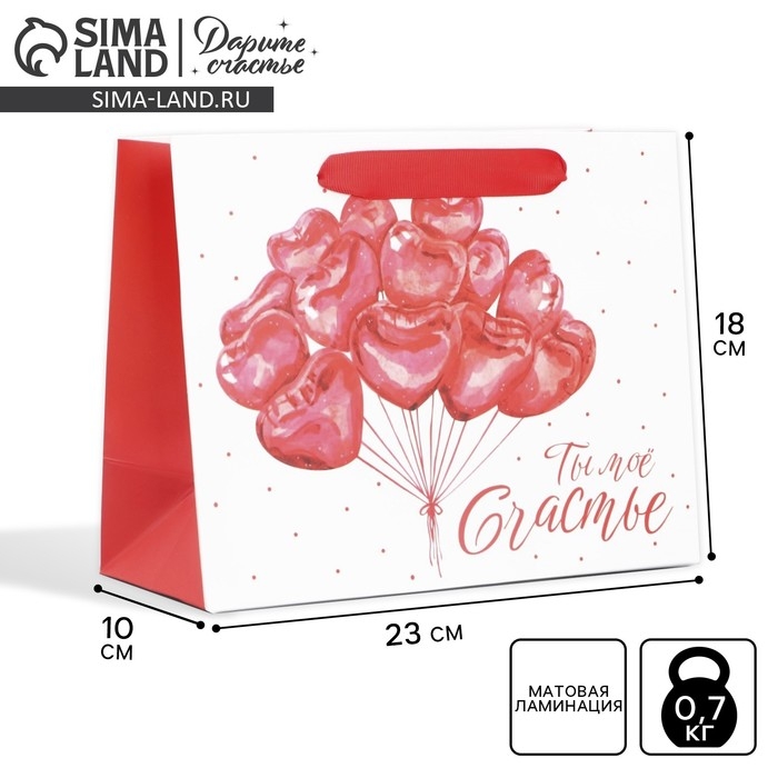 Пакет подарочный ламинированный горизонтальный, упаковка, «Ты моё счастье», MS 23 х 18 х 10 см