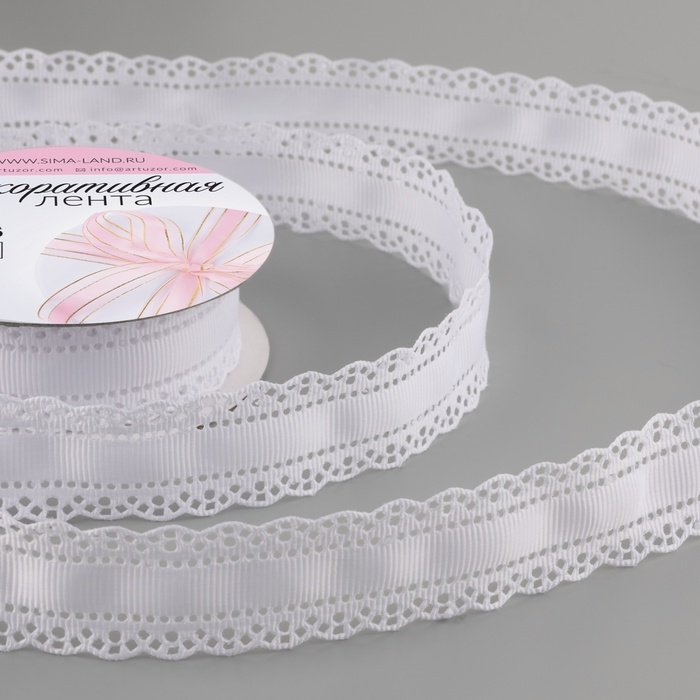 Лента декоративная, репсовая, с ажурным краем, 27±3 мм×9.1±0.5 м, белая