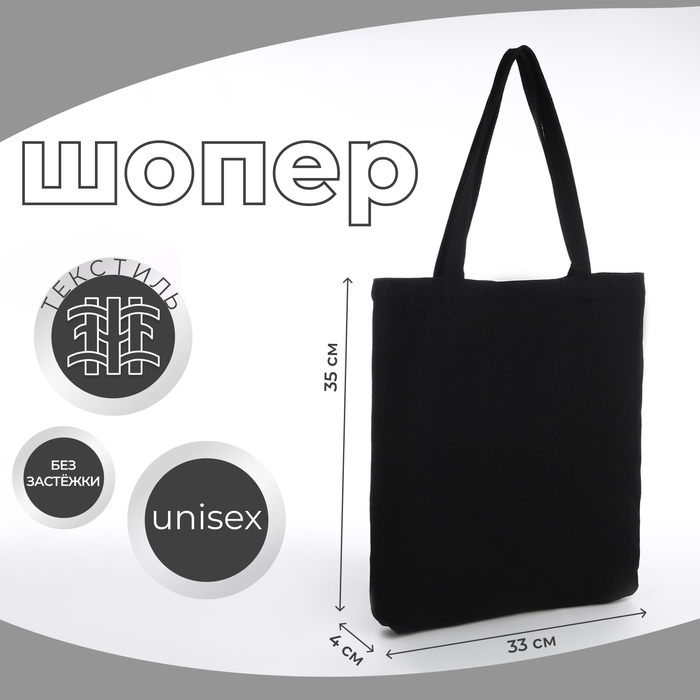 Сумка-шопер без застёжки, из текстиля, цвет чёрный