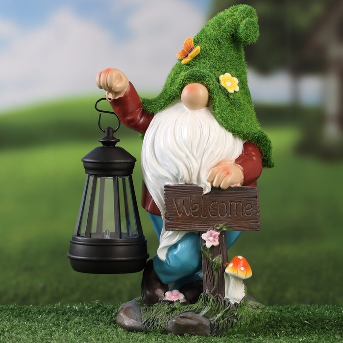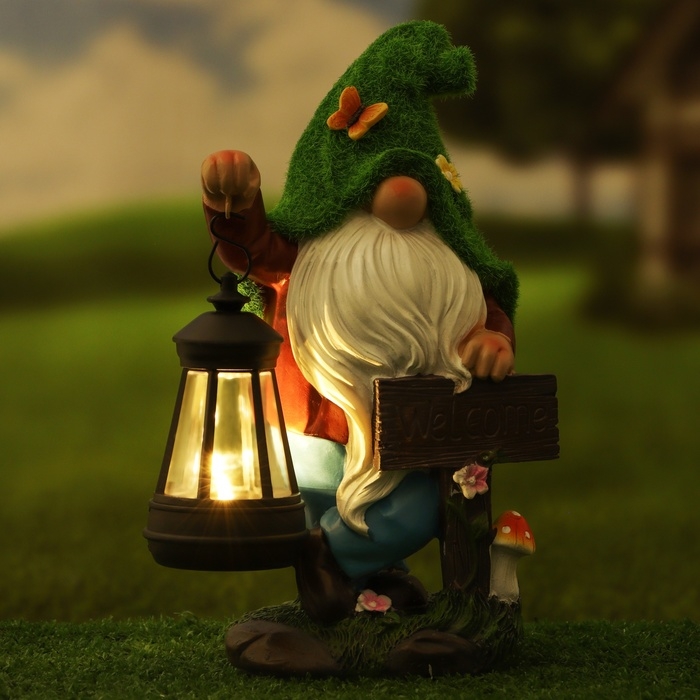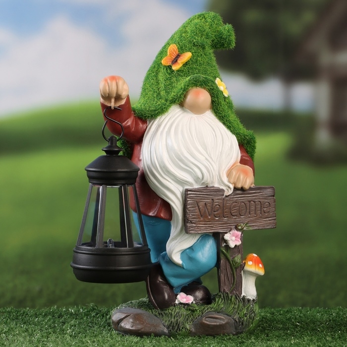 Садовый фонарь "Гном Welcome" 9х15х25см