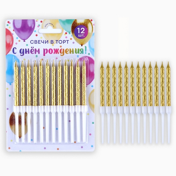 Свечи для торта, золото, 12 шт., 11 х 0,5 см