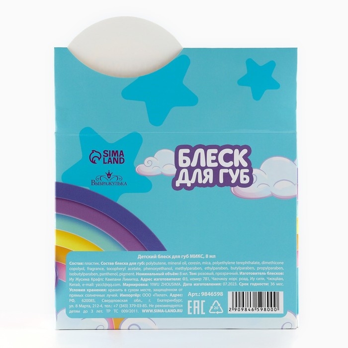 Детский блеск для губ в макаруне «Единорог», МИКС цветов и ароматов, 10 г