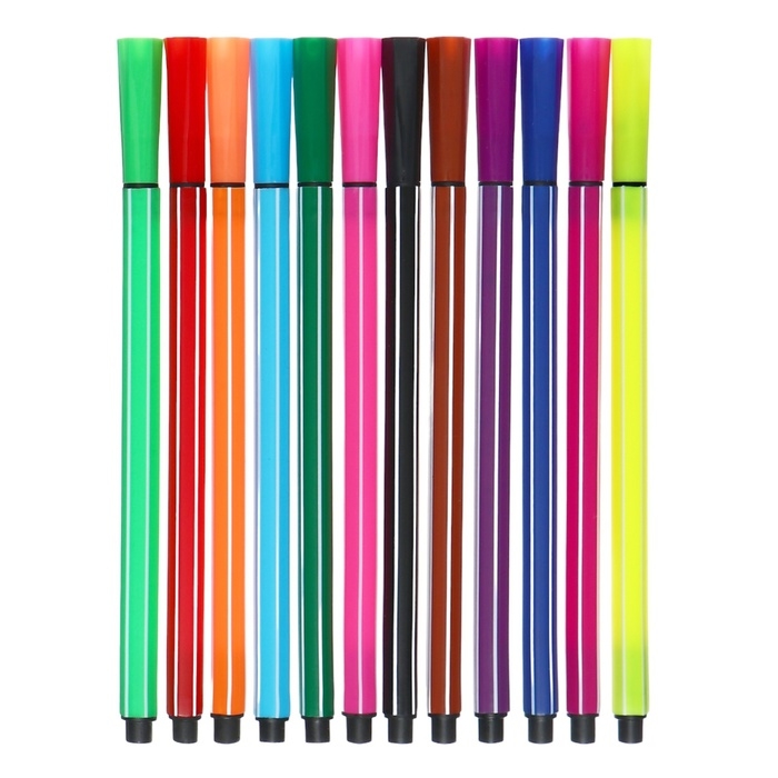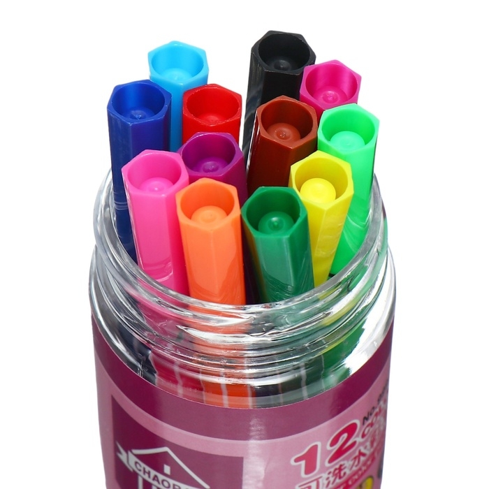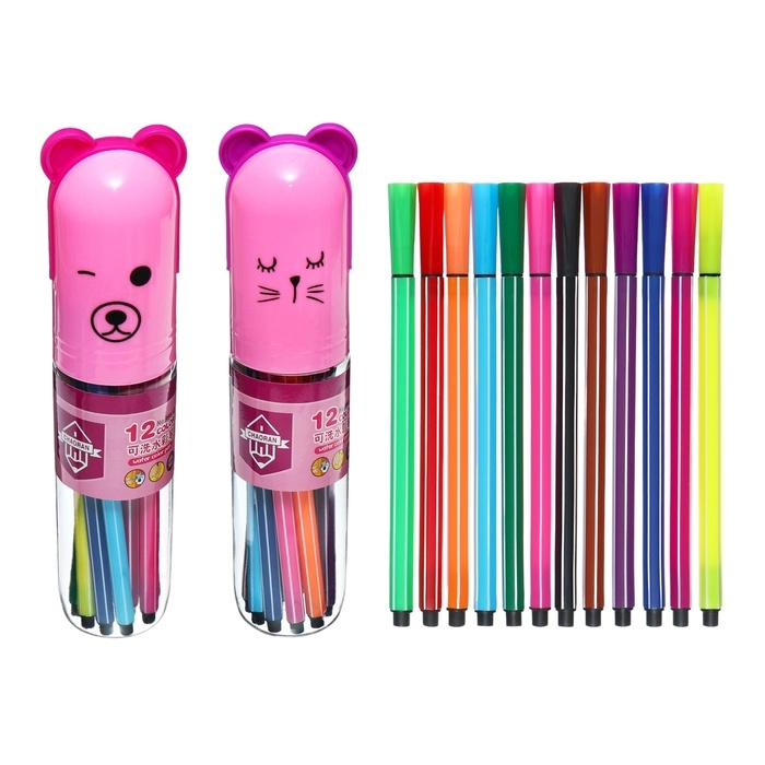 Фломастеры 12 цветов, в тубусе, розовая "Мишка.Киска", МИКС