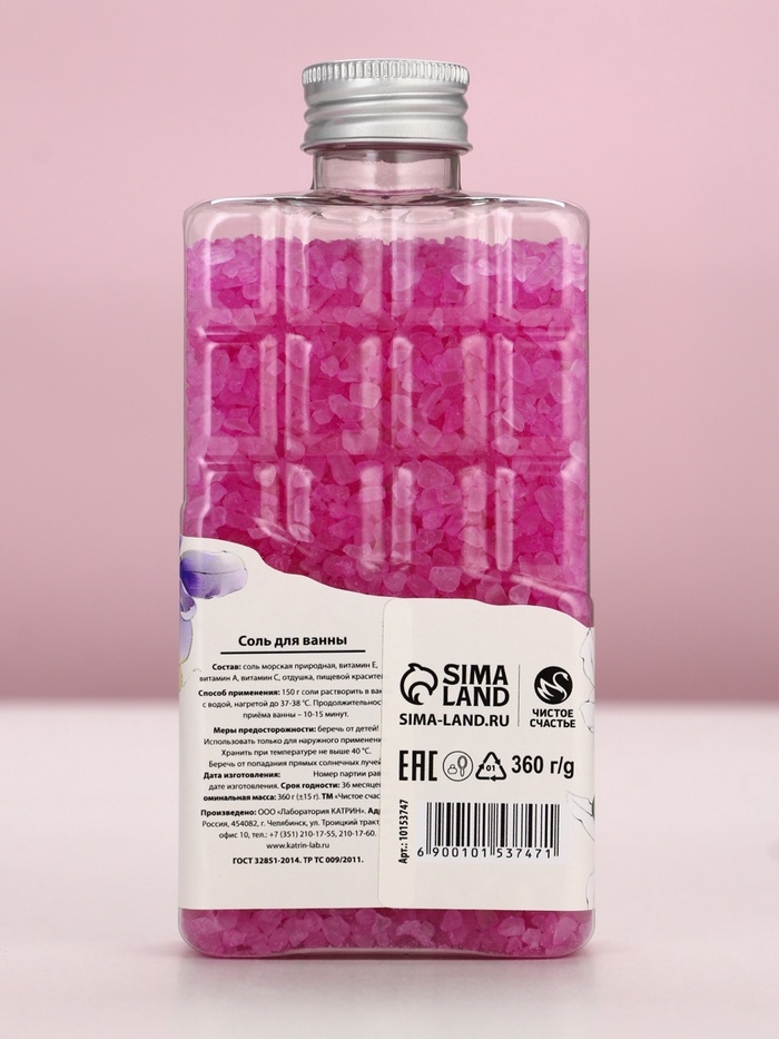 Соль для ванны во флаконе шоколад «Время для себя», аромат ванили, 360 г, ЧИСТОЕ СЧАСТЬЕ