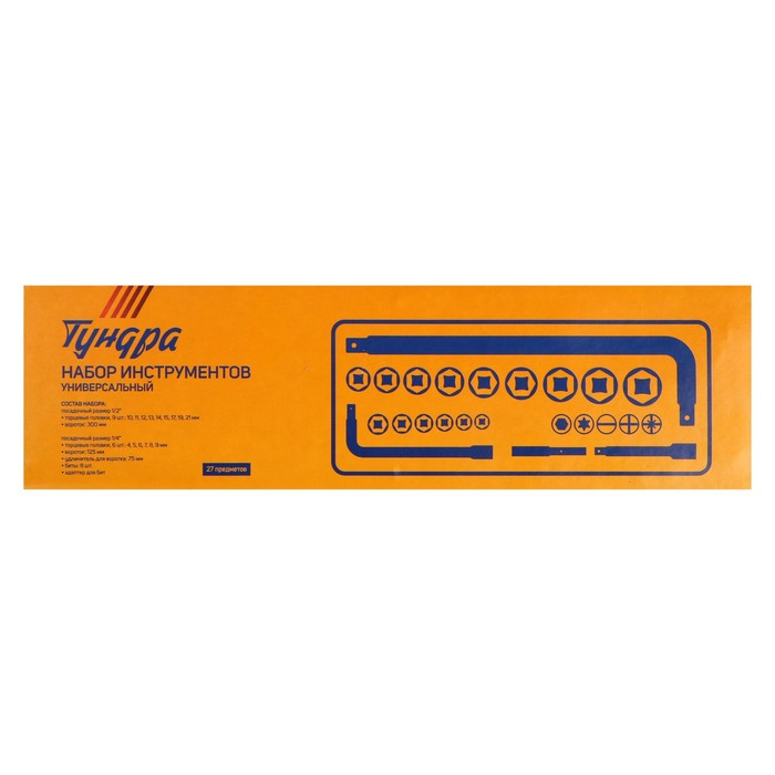 Набор инструментов в кейсе ТУНДРА, автомобильный, 1/2" и 1/4", 27 предметов