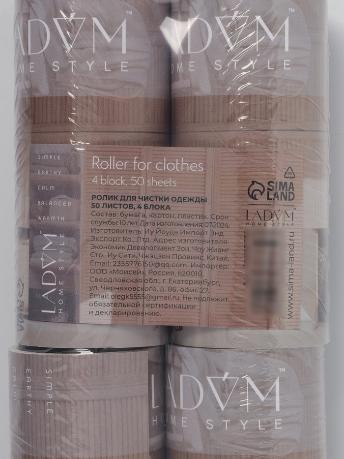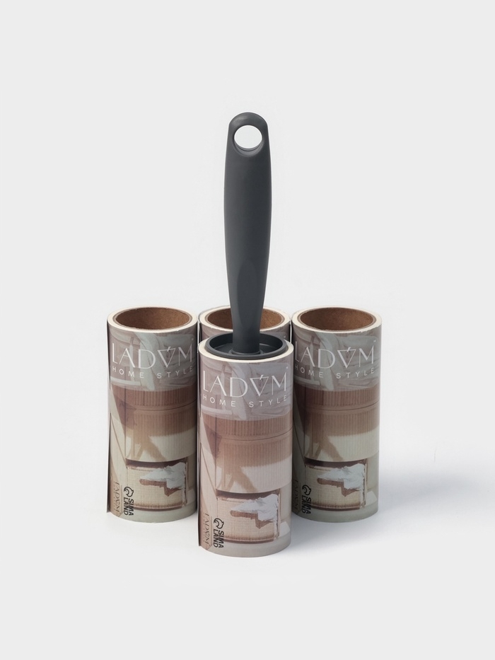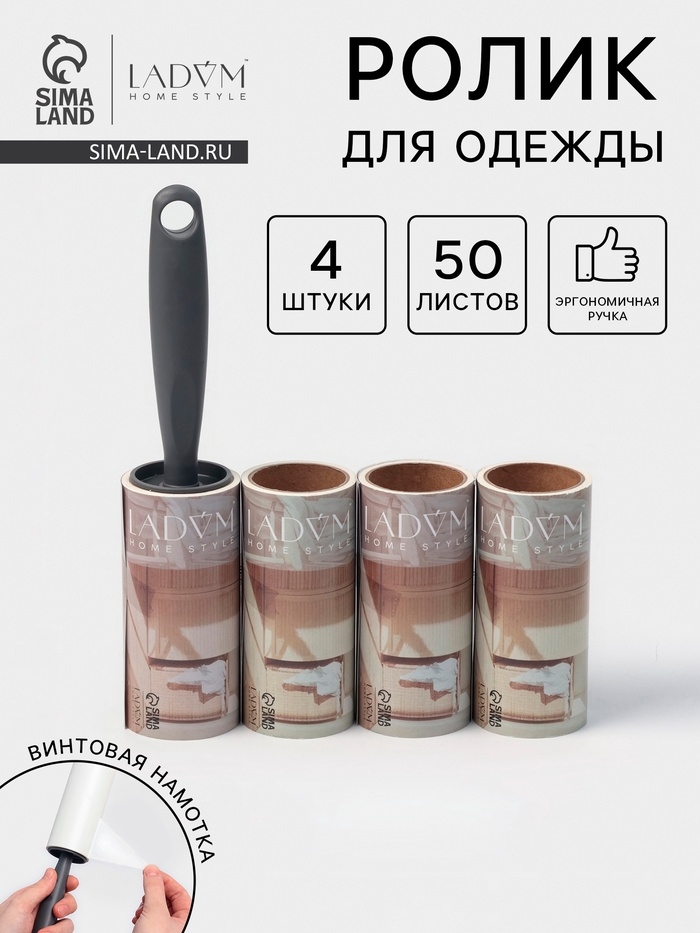 Ролик для одежды со сменными блоками LaDо́m, 4 шт по 50 листов, эргономичная ручка, винтовая намотка