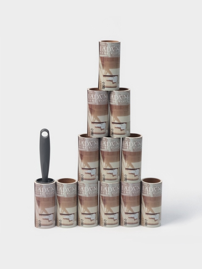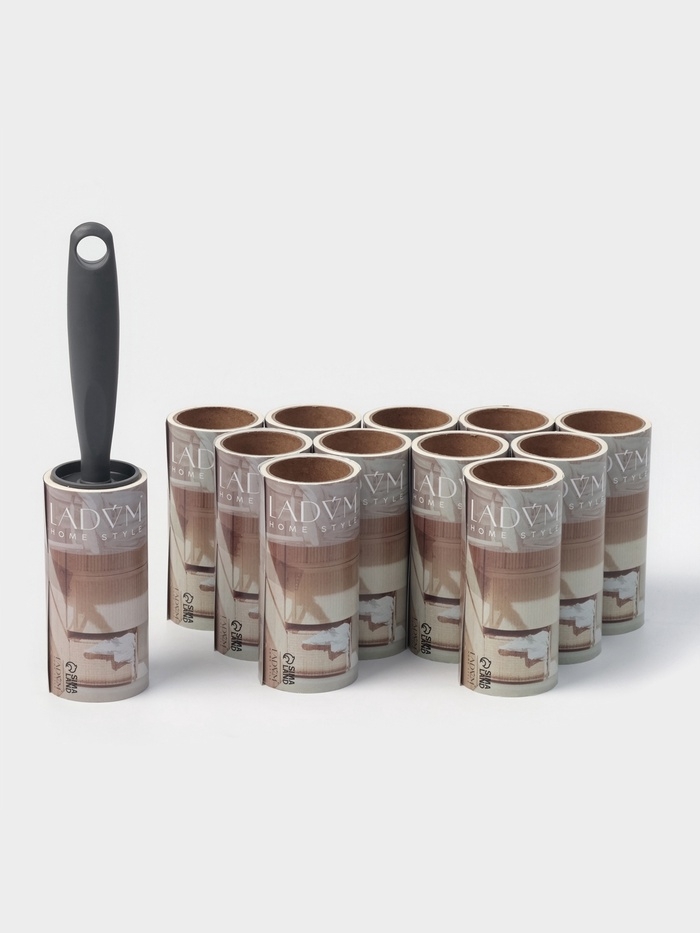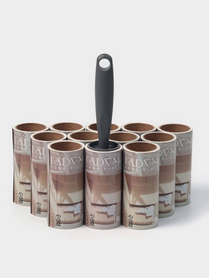 Ролик для одежды со сменными блоками LaDо́m, 12 шт по 50 листов, эргономичная ручка винтовая намотка