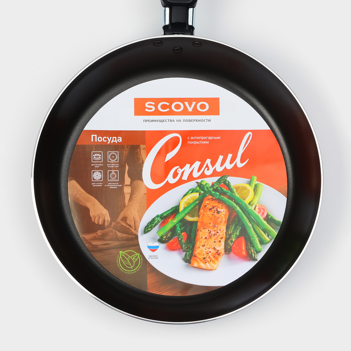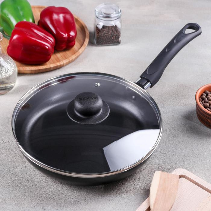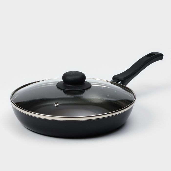 Сковорода Consul, d=24 см, стеклянная крышка, пластиковая ручка, антипригарное покрытие, цвет чёрный