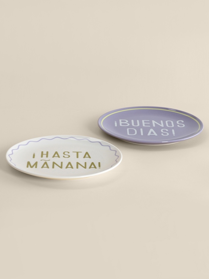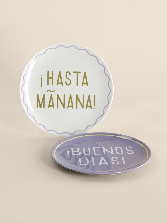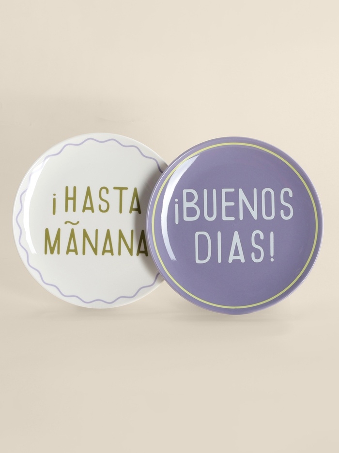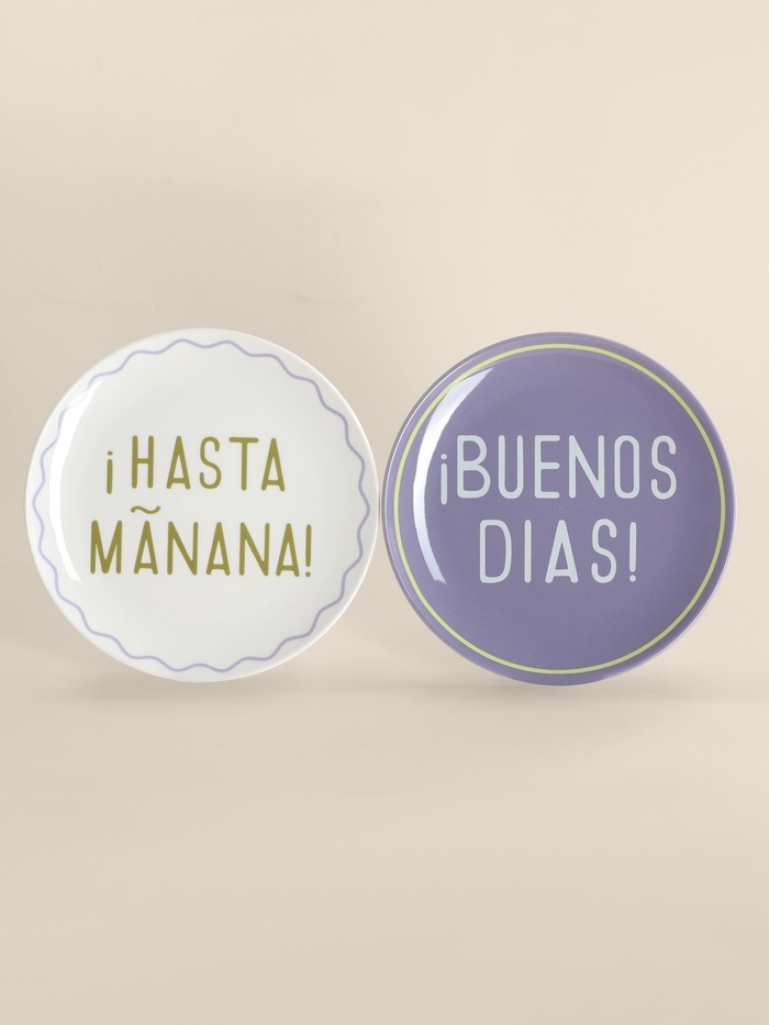 Тарелки SL Home «Уроки испанского: ¡Hasta mañana - Buenos dias», d=22 см, набор 2 шт., фарфор, белые, фиолетовые