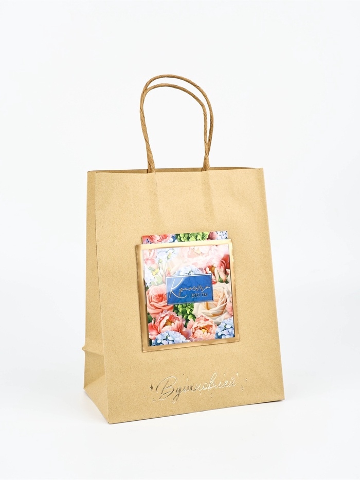 Пакет крафтовый с открыткой «Красота», MS 18 × 10 × 23 см