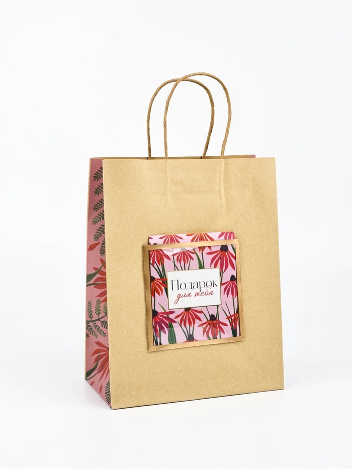 Пакет крафтовый с открыткой «Подарок», MS 18 × 10 × 23 см