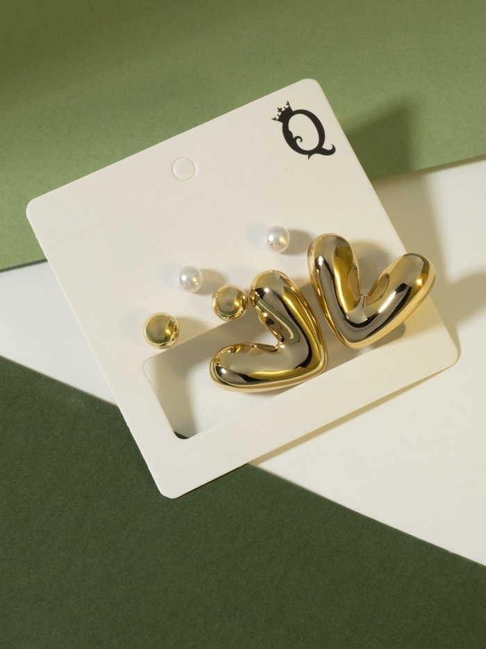 Набор серьги 3 пары «Буквы» любовь, цвет розовый в золоте