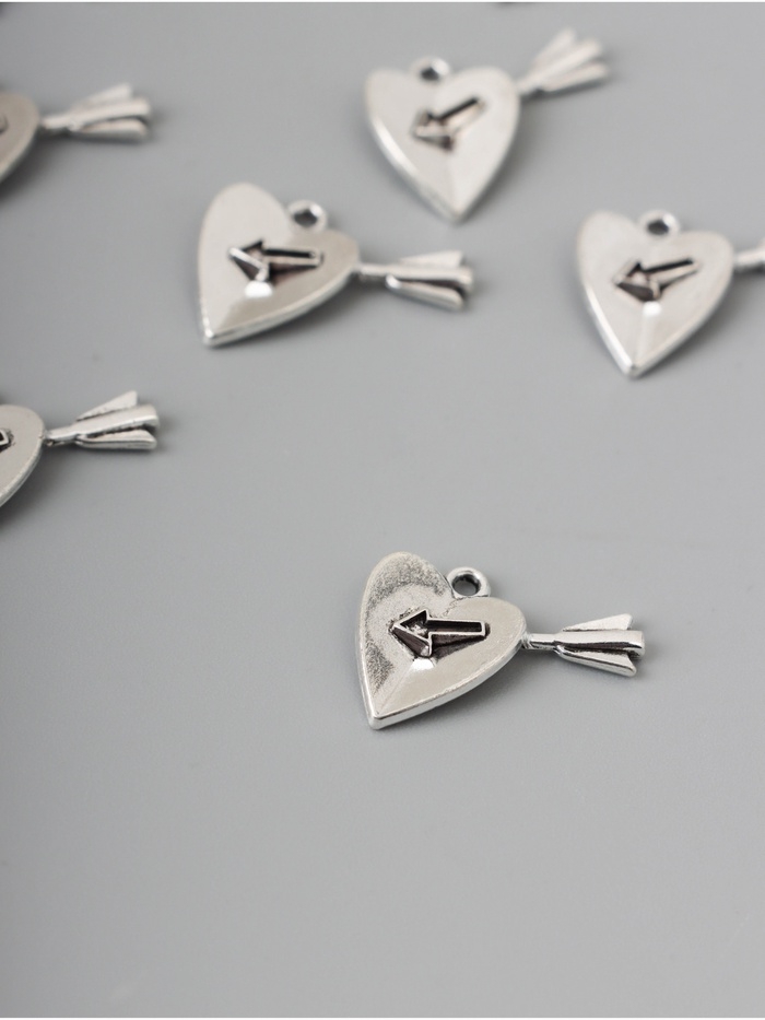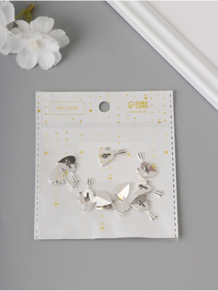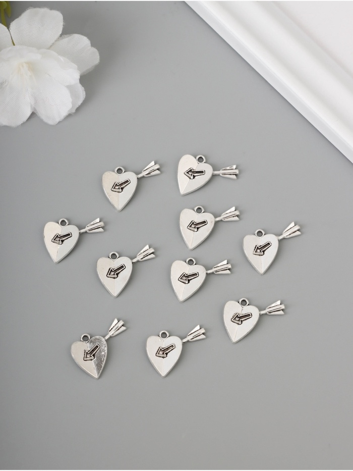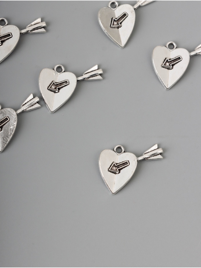 Декор для творчества металл "Сердце со стрелой" серебро набор 10 шт 1,8х2х0,2 см
