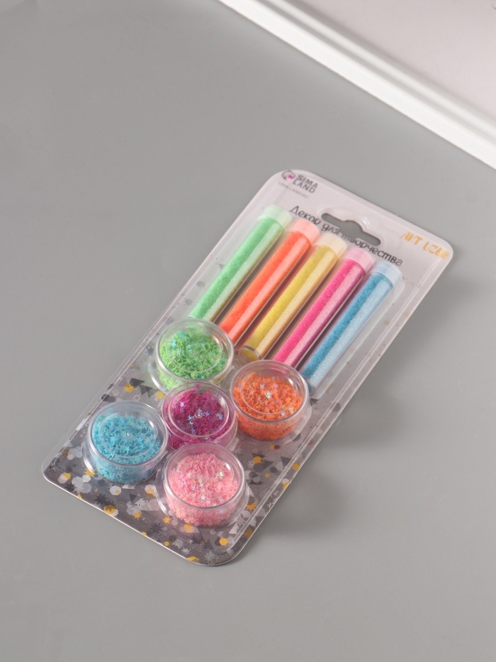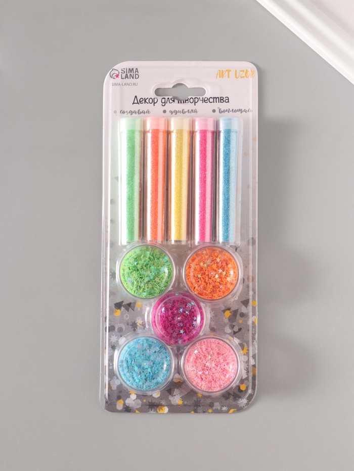 Глиттер "Пудра и звёзды" неон набор 5х6 гр и 5х5 гр 21,4х9,3 см