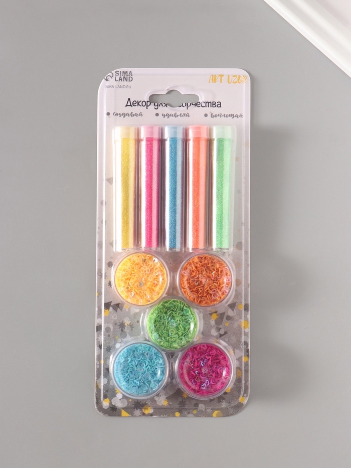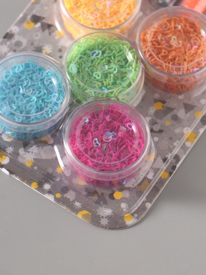 Глиттер "Пудра и сердца с отверстием" неон набор 5х6 гр и 5х5 гр 21,4х9,3 см