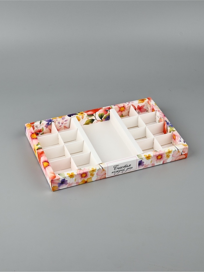 Коробка под 16 конфет и шоколад, кондитерская упаковка «Счастья» 28,8 х 18,6 х 3 см