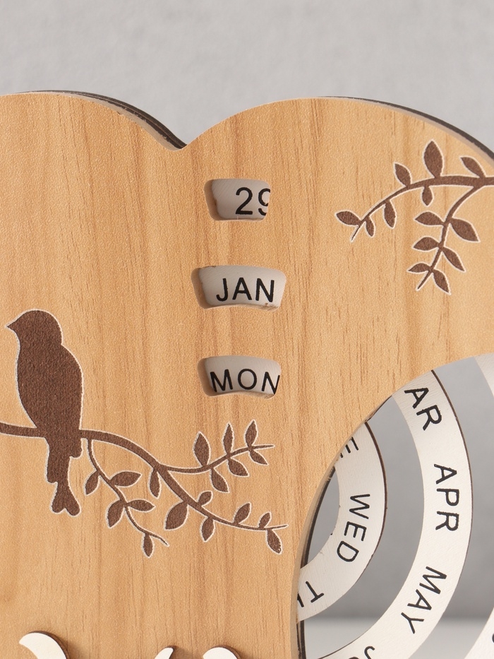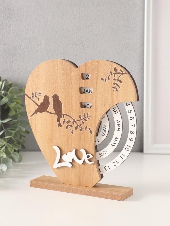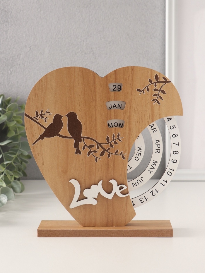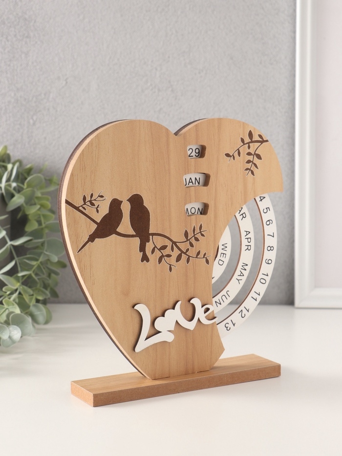 Сувенир дерево настольный календарь "Две птички на сердце" 3,7х18х19,5 см