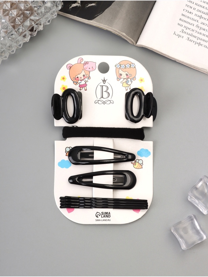 Набор для волос «Венди», резинка 5.5 см, 6 невидимок 5.5и5 см, 2 краба 2.5 см, классик, чёрный