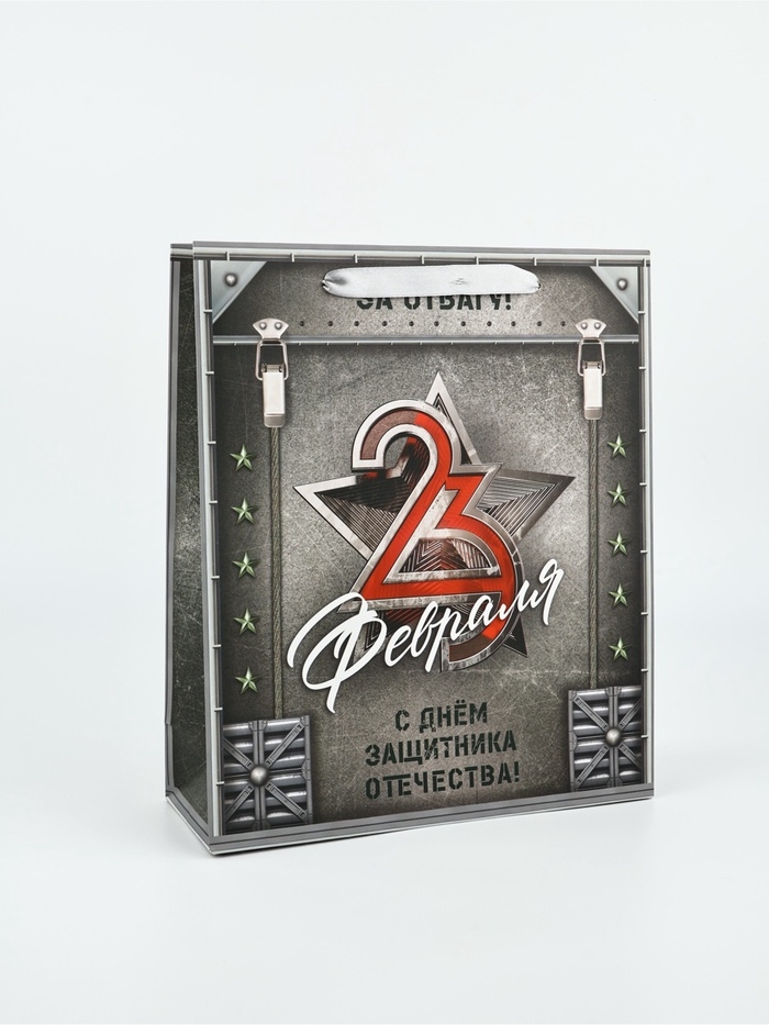 Пакет подарочный ламинированный «23 февраля», M 25.5 х 30 х 9 см