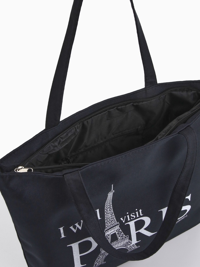 Шопер PARIS, 42*9*32, отдел на молнии, подклад, черный/белый