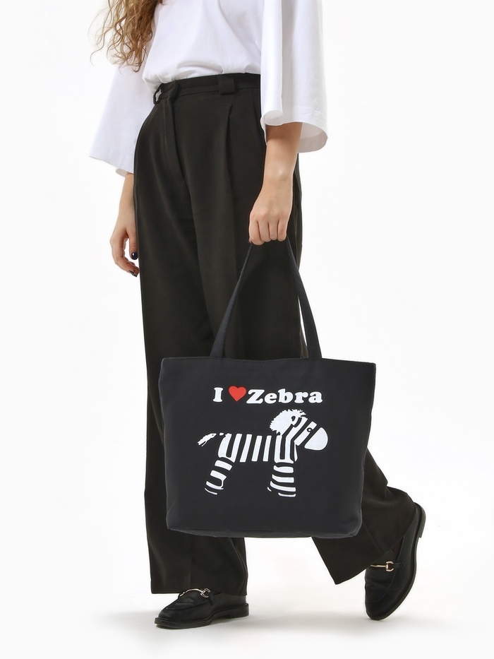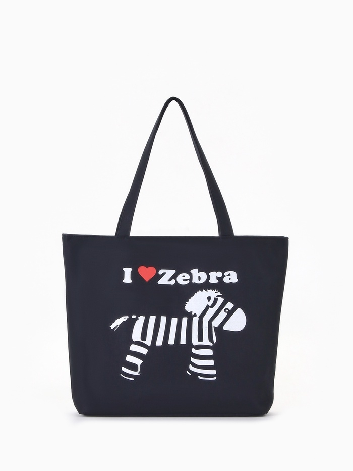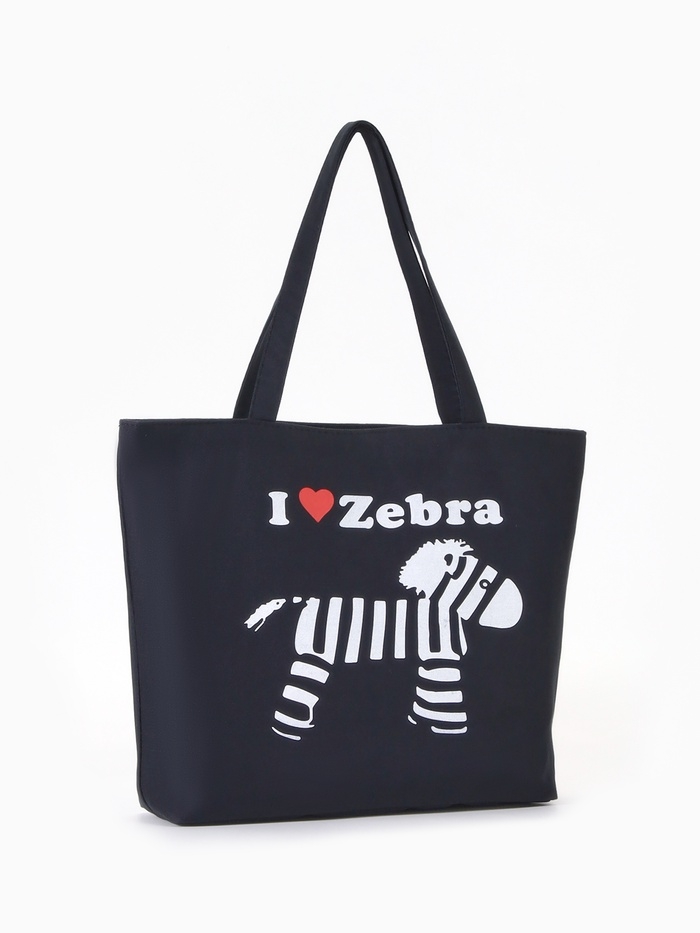 Шопер Зебра, 42*9*32, отдел на молнии, подклад, черный/белый