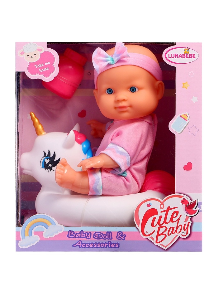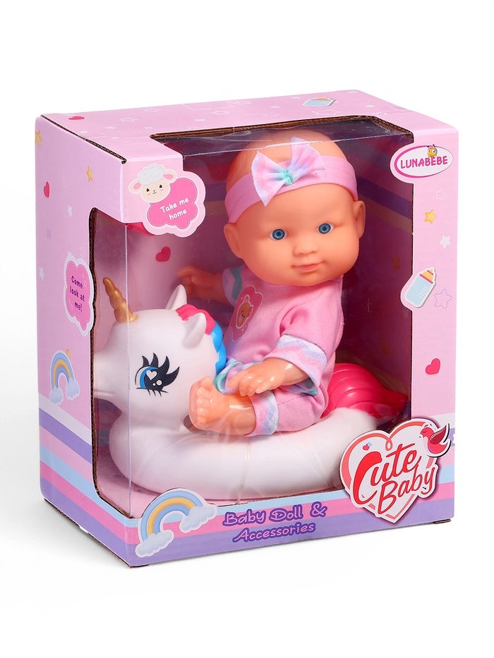 Пупс «Купание с единорогом» — это идеальный подарок для маленьких любителей водных забав. В комплекте идёт всё необходимое для весёлого купания: кукла, баночка и круг для купания в виде единорожки. Одежда пупса легко снимается, что делает игру ещё более увлекательной и разнообразной.